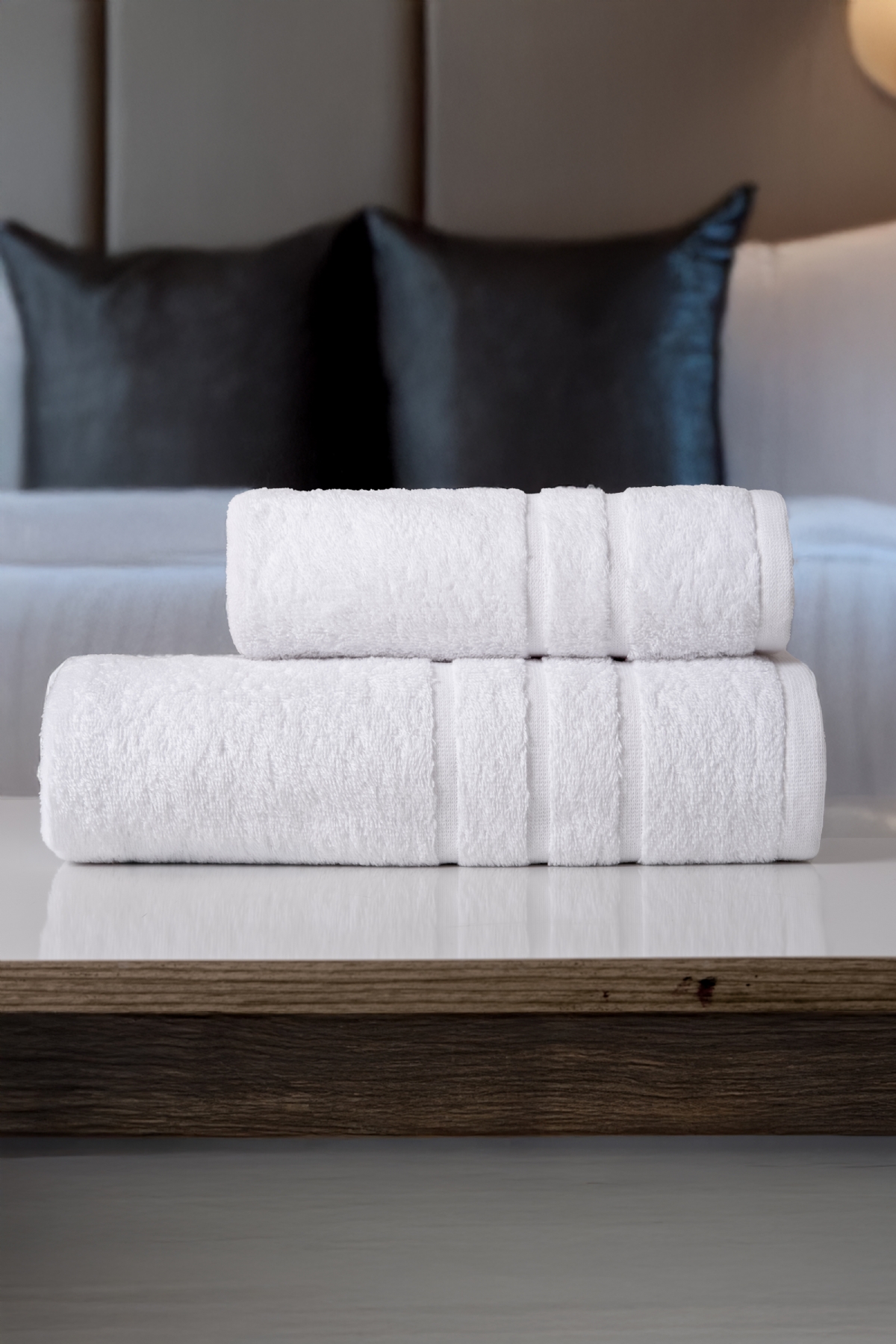 Unsere Hand- und Badetücher aus 90% Baumwolle und 10% Polyester mit 450 g/m² bieten höchste Qualität, Komfort und Langlebigkeit – speziell für den professionellen Einsatz in Hotels, Wellnessbereichen und Spas. Das hochwertige Material ist weich, hautfreundlich und saugfähig, während der Polyesteranteil die Formstabilität erhöht. Dank spezieller Verarbeitung ist das Fadenziehen-Problem gelöst, sodass die Tücher auch nach häufigem Gebrauch ihre hochwertige Optik behalten. Zusätzlich sind die Tücher besonders langlebig und schnell trocknend, wodurch Energie und Wasser beim Waschen und Trocknen gespart werden können. Erhältlich in den Größen 50x100 cm und 70x140 cm, eignen sie sich sowohl als Hand- als auch Badetuch. Diese Tücher verbinden funktionale Qualität, nachhaltige Effizienz und professionellen Komfort – optimal für Hotels und Gastronomie.